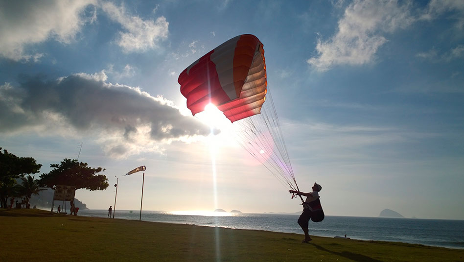 This morning my plan was to meet some hang gliders and go for a ride above Sao Conrado beach. As often happens in my life, the weather did not cooperate. The wind was blowing from the wrong direction and the pilot said it would be a "short, unpleasant flight"-three words I don't like to hear together. So instead, I photographed a man using his speed wing on the beach. I emailed the image to him, he liked it, and asked if I wanted to see his friends base jump off the adjacent mountain.