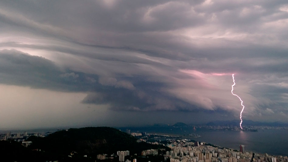 I went up to Donna Marta to shoot the classic evening photo of Rio with Botofugo and Sugarloaf at twilight. But when we arrived, dark clouds were blowing in from across the bay. It really became spectacular when lightning started crackling across the sky. Smart people fled the Mirador, but we stayed to see what would happen. The storm that moved in was enormous. Huge black clouds, lots of lightning, crashing thunder.
